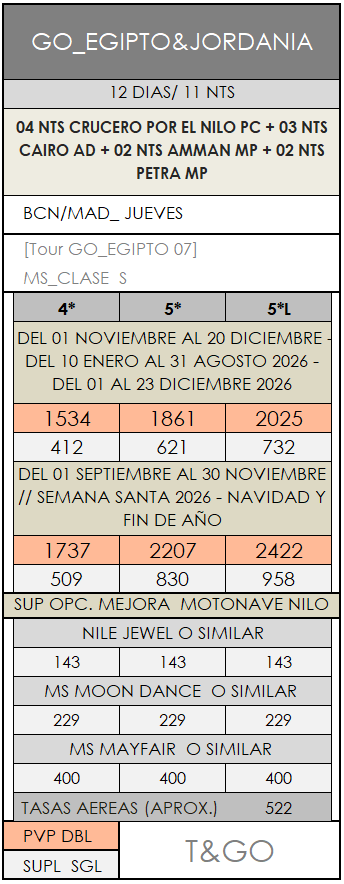 PACK VISITAS INCLUIDAS EN CRUCERO NILO: