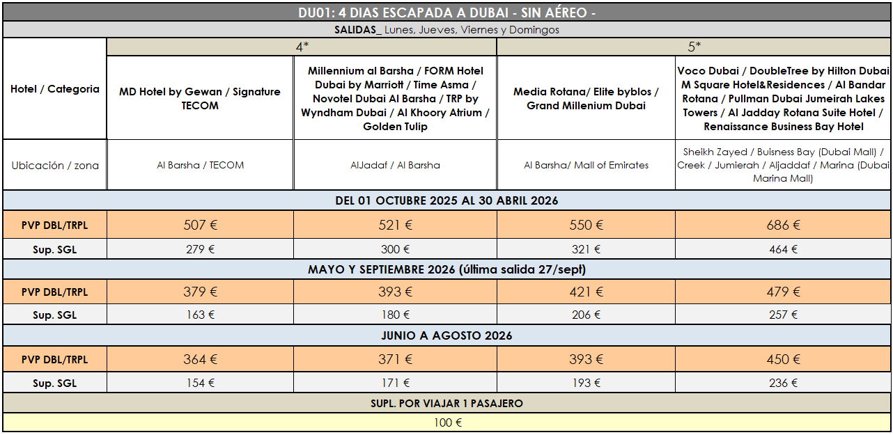 Desayuno en el hotel. Mañana libre para disfrutar de la ciudad de Dubai. Por la tarde, haremos nuestra excursión más popular, el Safari por el desierto. Los Land Cruisers (6 personas por vehículo) pasaran por el hotel a recogerles entre las 15:00h – 15.30h aprox. para un excitante trayecto por las increíbles dunas. Podrán hacer unas fotos únicas de la impresionante puesta de sol árabe. Una vez desaparezca el sol detrás de las dunas de arena dorada, nos dirigiremos hacia nuestro campamento en el desierto. El olor a brocheta fresca a la parrilla, las hogueras y el olor a las tradicionales pipas de agua junto con el relajante sonido de la música árabe, les invitará a una tarde inolvidable. Durante la cena disfrutaremos de espectáculos folclóricos y una bailarina les mostrará el antiguo arte de la danza del vientre. En el campamento, tendrán la oportunidad de practicar sandboarding, montar a camello y hacerse un tatuaje de henna. La cena incluye agua, refrescos, té y café. Regreso al hotel sobre las 21.30h aprox. Alojamiento.