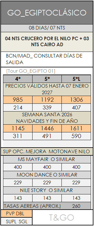 PACK VISITAS INCLUIDAS EN CRUCERO NILO: