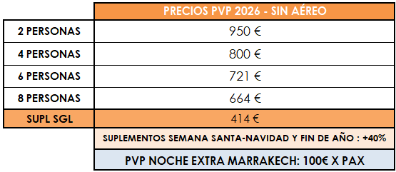 2NTS MARRAKECH A.D + 1NT DADES M.P +1NT DESIERTO MERZOUGA M.P + 1NT OUARZAZATE M.P