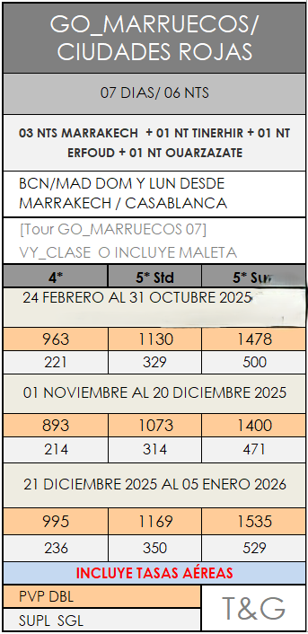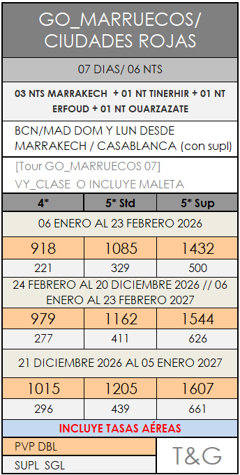 SUPLEMENTO PVP INICIO EN CASABLANCA 110€ X PERSONA