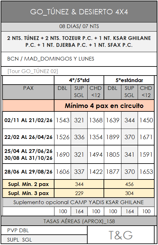 Salida garantizada mínimo: 4 PAX - GRUPOS REDUCIDOS-