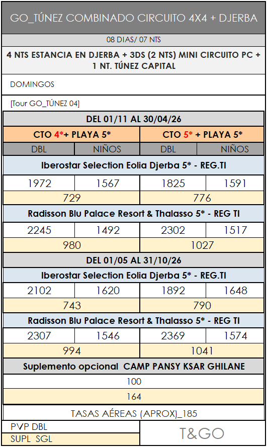 HOTELES EN DJERBA SEGÚN ELECCIÓN: