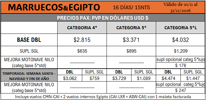 suplemento opcional MEJORA MOTONAVE CATEGORIA LUJO: NILE STORY O SIMILAR