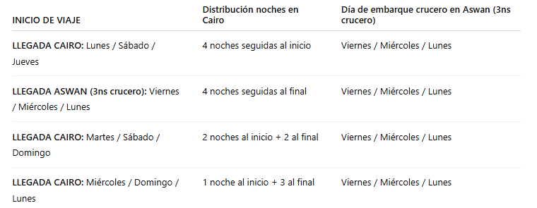 Salidas: Consultar días de salidas -- Salida garantizada mínimo: 2 pasajeros