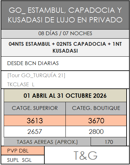 4 NTS ESTAMBUL + 2NTS CAPADOCIA + 1NT KUSADASI