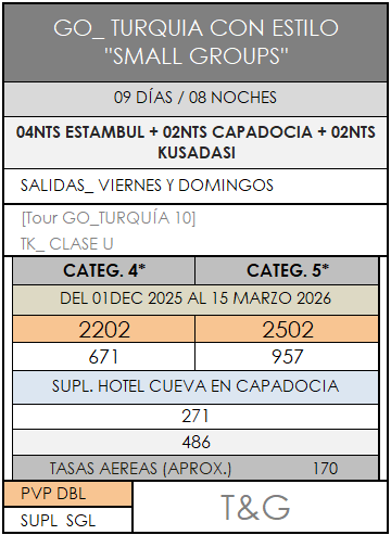 4 NTS ESTAMBUL + 2NTS CAPADOCIA +2 NS KUSADASI