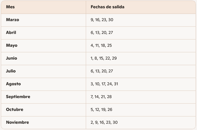 MÁXIMO PASAJEROS EN CADA GRUPO 30 PAX